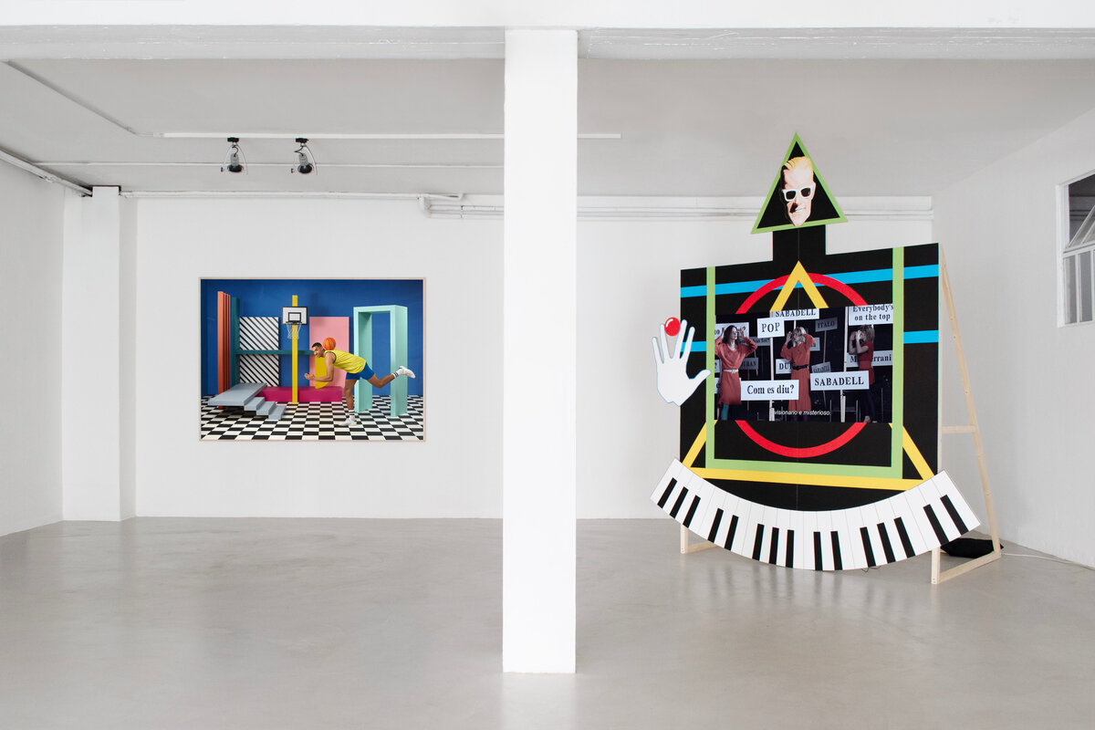 The video Abans de la casa/Un biopic inestable a través del sonido Sabadell, presented within a set inspired by the Sabadell sound, a Catalan variant of 1980s Italodisco known for disguising its local origins through clever marketing. Rather than a traditional documentary, the work offers a fragmented, associative narrative exploring the aesthetics and cultural context of the era. Featuring interviews, reenactments, performances and music reflects on the period’s artistic and political climate.