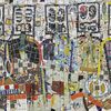 Throughout his practice, Indigenous Australian artist Daniel Boyd has worked with dots. With tiny, overlapping circles of paint—which the artist calls “lenses” or “oculi”—Boyd creates mesmerizing paintings questioning the dominance of Western cultural systems in Australia and beyond. Dots make up a monochrome portrait of Boyd’s mother and himself, which hangs along several other works by the artist in the labyrinthine white spaces of Al Mureijah Square in Sharjah. The points of color make the image hard to decipher up close, suggesting the destabilizing effects of colonialism on personal and familial histories.