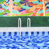 As such, the painting seems to have no subject—a rarity for his paintings at the time. This anonymity invites intrigue, as viewers imagine who may have just dived in, or feel the rush of springing from a diving board themselves into cool water beneath the heat of the California sun. But it is the ephemeral moment, those split seconds in the aftermath of a subject puncturing the water’s surface, that most intrigued Hockney. Fascinated by the interplay between water and light, he has produced many works featuring swimming pools, rendering them each time in a different style, including in Peter Getting Out of Nick’s Pool (1966); Pool and Steps, Le Nid du Duc (1971); and Portrait of an Artist (Pool with Two Figures) (1972).