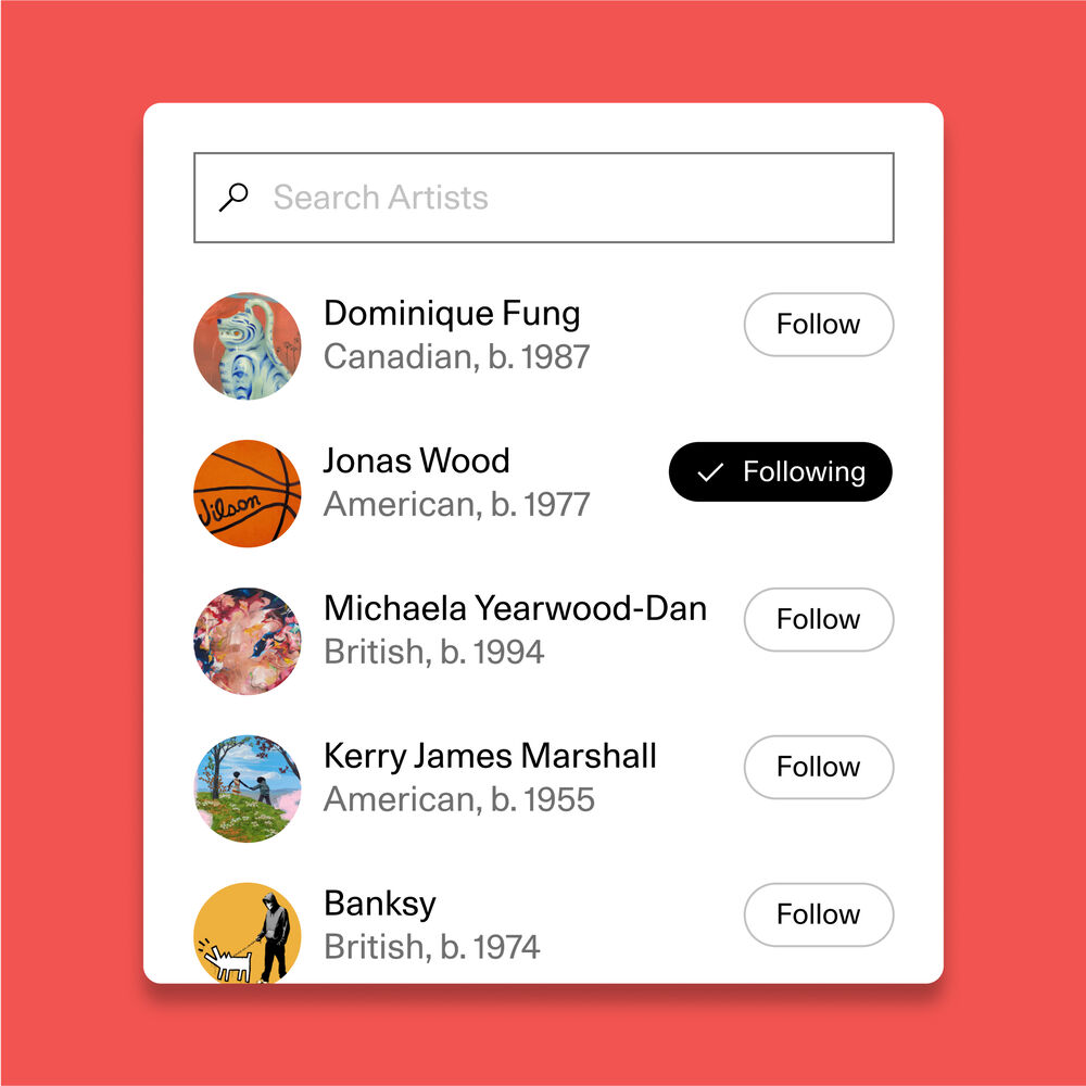Get updates on your favorite artists, including new artworks, shows, and more.