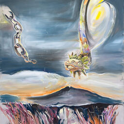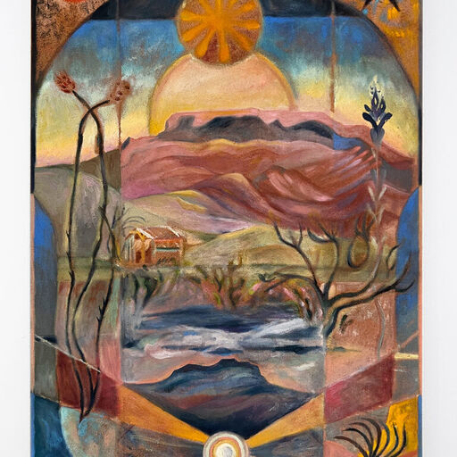 Step into a world of imagined geographies—landscapes not found on any map but rooted in memory, dream, and ritual. In Cartography of Elsewhere, Margaret R. Thompson blends oil paint with earth, sand, and sacred materials collected from places that feel holy to her.