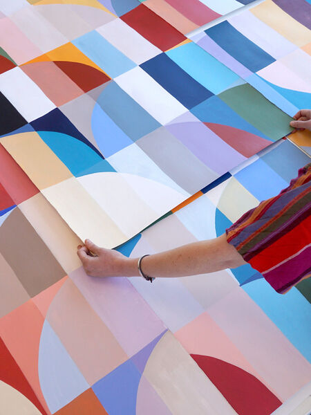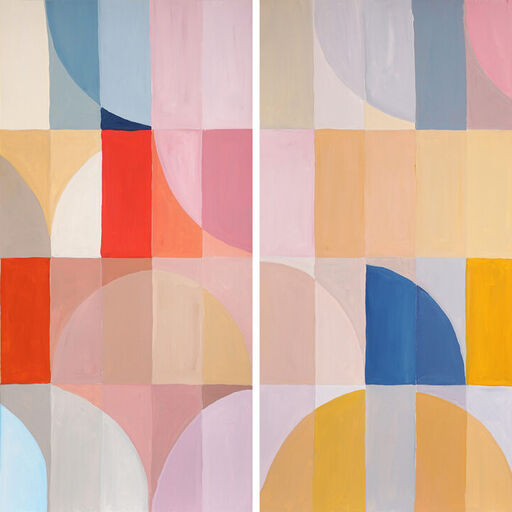 Arcs, curves, loops, ellipses, parabolas... all are included in Natalia Roman's new online exclusive show, HYPERMOON, where we can find a collection of paintings of the artist's continued exploration of Bauhaus-inspired forms combined with vivid and pastel color patterns.