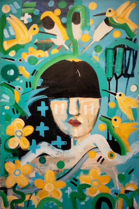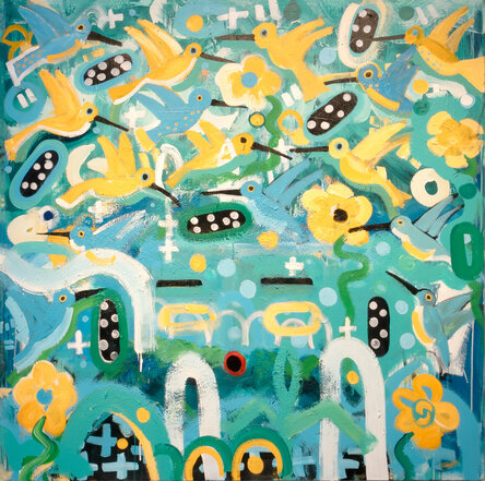 Gregory Lomayesva merges Pop Art influences with symbols and stories from his Hopi heritage in his large-scale paintings. Using vibrant color and gestural forms, Lomayesva reimagines Native American iconography, creating a visual language that bridges traditional cultural expressions with contemporary painting. Lomayesva is an artist, musician, and sound engineer based in Santa Fe. His work has been shown at venues such as J.Cacciola Gallery in New York, the Heard Museum in Phoenix, the Albuquerque Museum, and STAP Project in Florence, Italy.